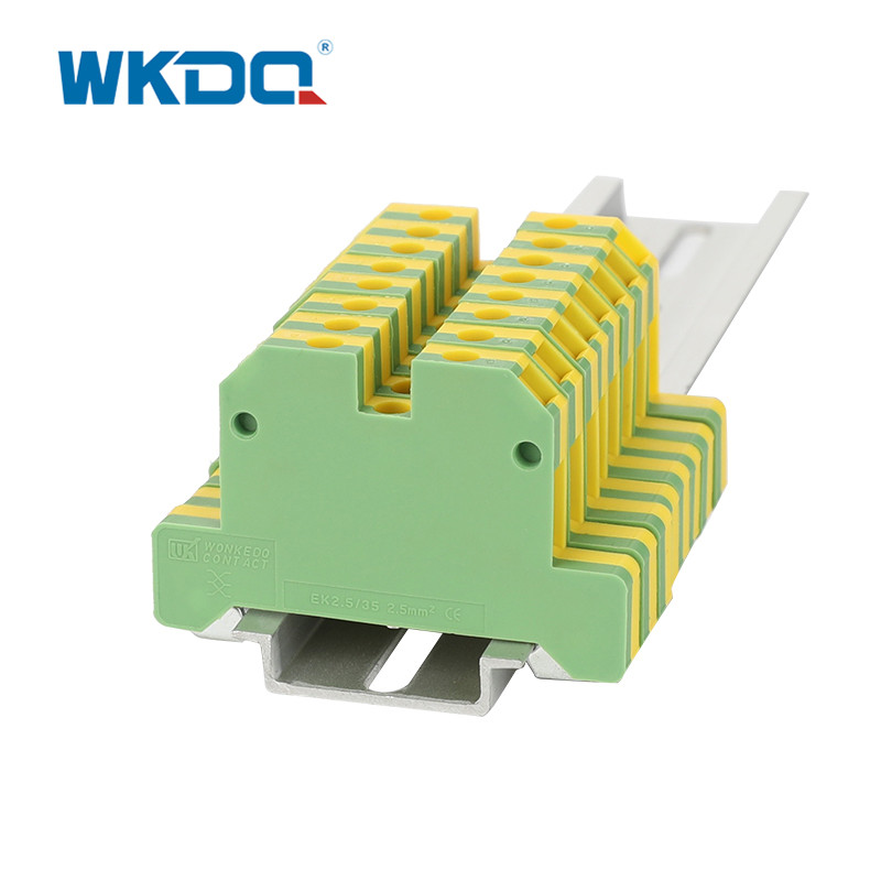 接地回路端子台のハウジングは、接地接続を示すために使用される国際的に認められた色の緑と黄色の材料で成形されています。