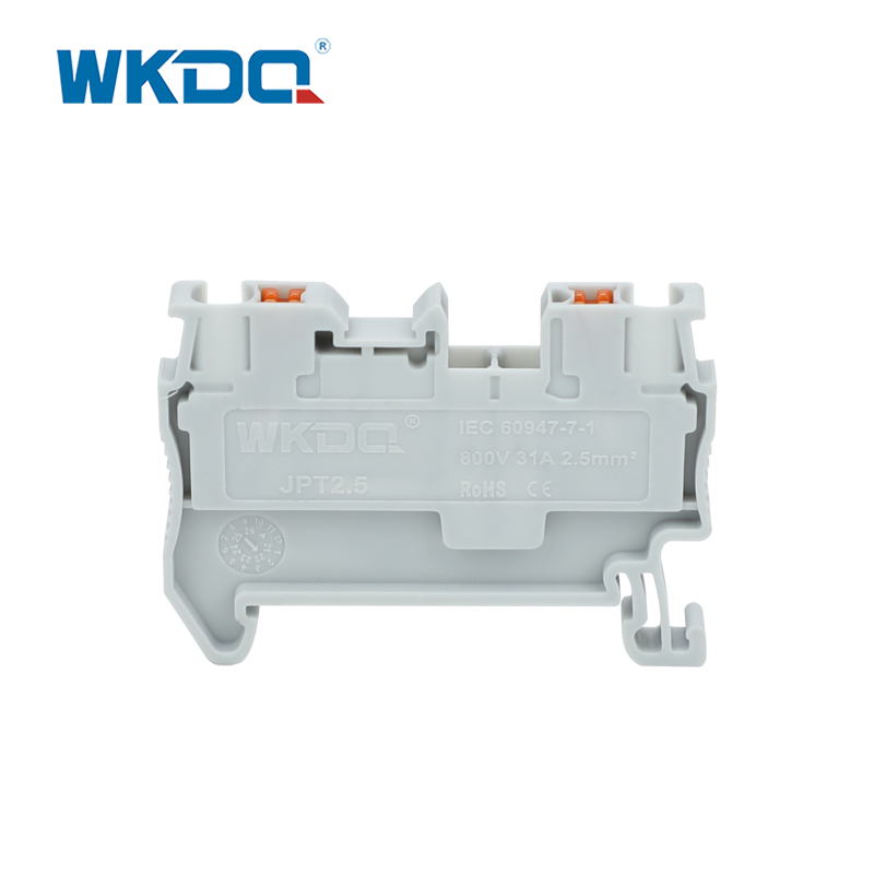 オレンジ色のプッシュ底部を押すだけで接点が開き、導体を取り外すことができます。特別な工具を使用する必要はありません。