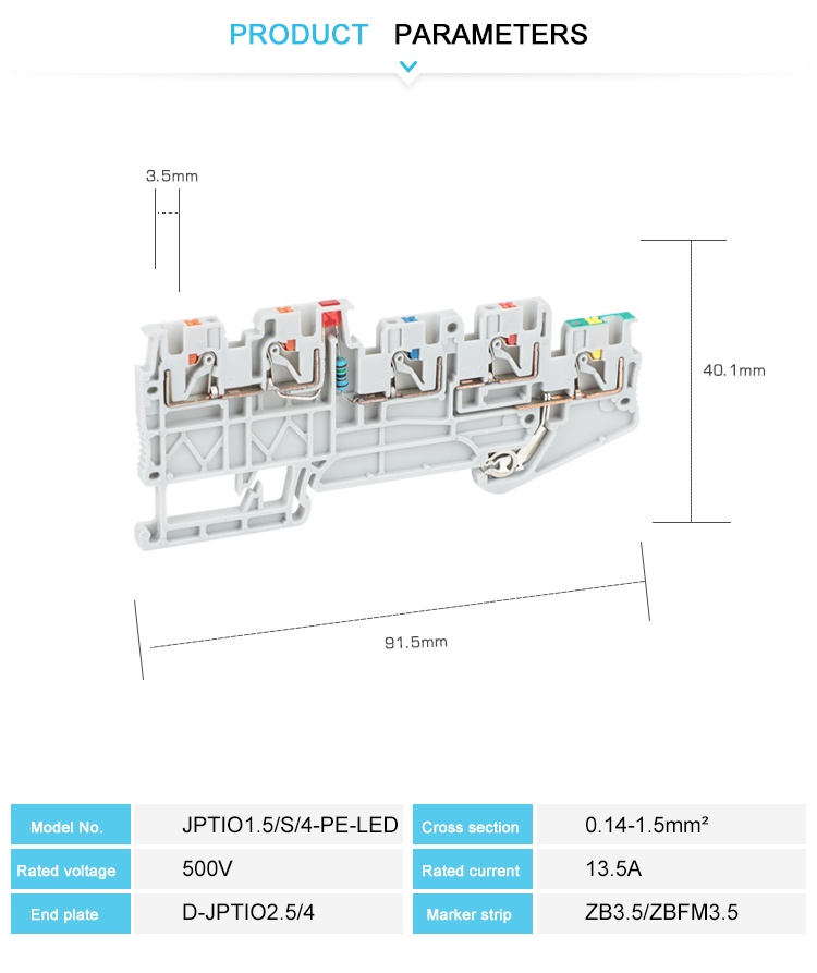 CE/RoHS/CQC/ISO 9001JPTIO1.5/S/4-PE-LED(24V) センサーアクチュエーター端子台Push-in 直接接続技術により、挿入力が最大 50% 軽減され、工具不要の配線により、導体を簡単かつ直接挿入できます。エンジニアリング難燃性ナイロン PA66 と真鍮ネジ金属で作られています。エンジニアリング難燃性ナイロン PA66 と真鍮ネジ金属で作られています。プッシュイン接続端子台は、フェルールまたはソリッド導体を備えた導体を工具不要で簡単に配線できるのが特徴です。コンパクトなデザインと前面接続により、限られたスペースでの配線が可能です。二重機能シャフトのテスト機能に加え、すべての端子台で追加のテスト接続......