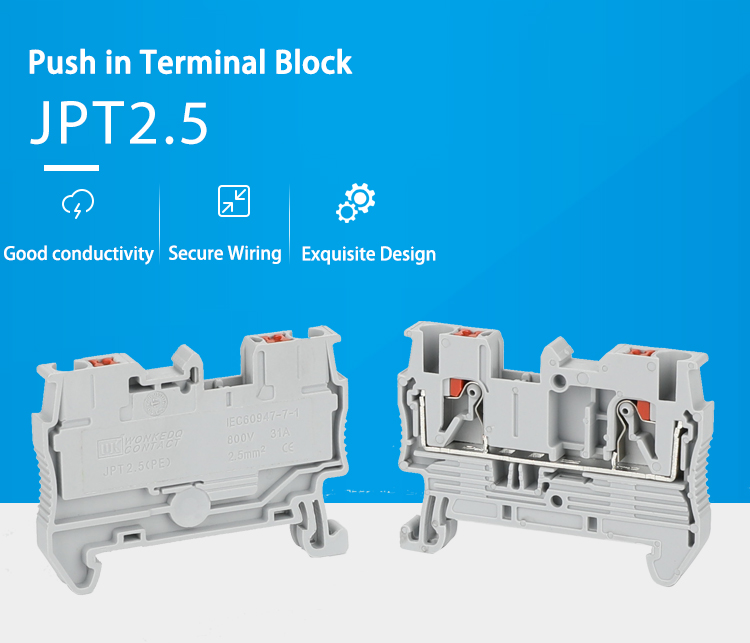 プッシュインJPT 2.5端子ブロックツールフリーの電気接続ソリューションとして、ユーザーはケーブルを押して安定した回路を確立する必要があります。 JPT 2.5ターミナルブロックJPT 2.5〜端子ブロックは、複数の環境で耐久性のある信頼性の高い動作を確保するために、高温抵抗と耐食性を備えたエンジニアリンググレードのプラスチックまたは金属材料で作られています。