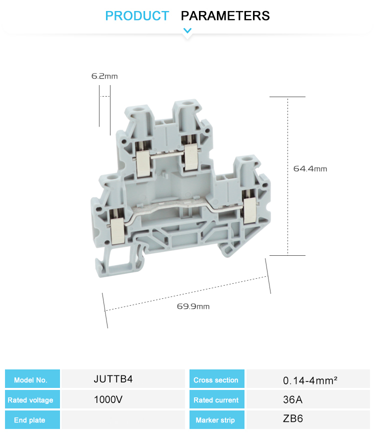 UTTB4マルチステージスクリューターミナルブロックは、安定したパフォーマンスを確保するための4mm²の容量を備えた、産業および商用の中程度および高電流シナリオ向けに特別に設計されています。マルチレベル構造は、迅速な設置のためにスペース、DINレールを最適化します。ねじの接続は、アンチ振動防止であり、固定/ねじれた銅線と互換性があります。高品質の難燃性材料は、耐熱性と衝撃耐性であり、業界の基準を満たし、最新のシステムに信頼できる効率的な接続を提供します。